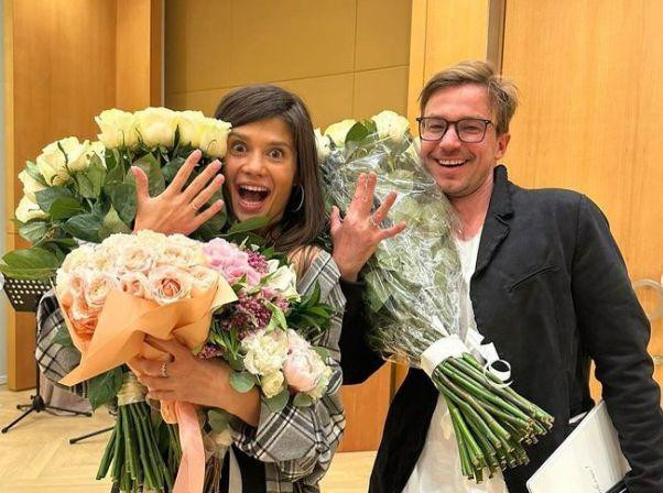 Короткая мини-юбка и стройные ноги: Александр Петров впервые вывел в свет молодую жену