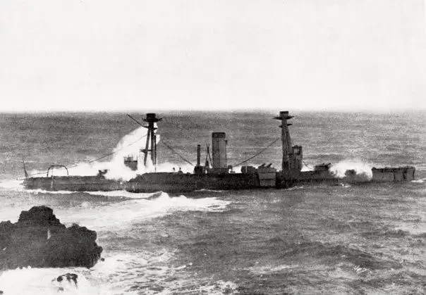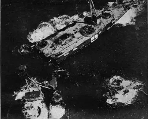Разломившийся на две части корпус линкора