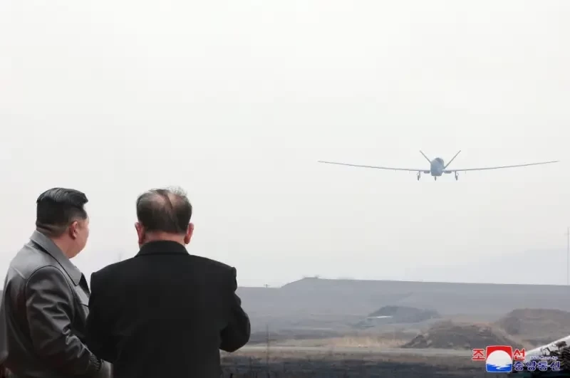 Ким Чен Ын знакомится с результатами деятельности Объединения беспилотной авиационной техники, март 2025 г.
