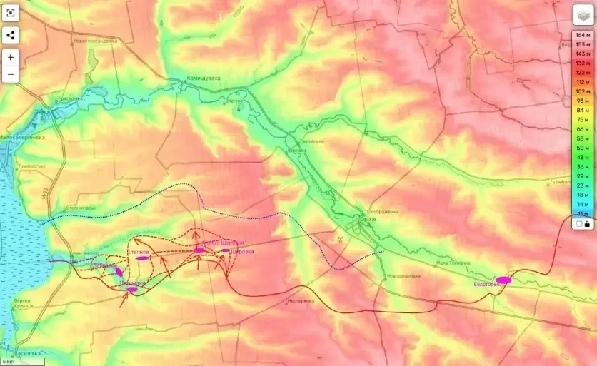 "Есть уже данные, что уже закрепились. И, таким образом, наступление наше продолжается, выравниваем фронт, чтобы дальше потом двигаться на главную линию обороны, которая прикрывает город Орехов с запада. Если мы ее прорываем, у Ореховского гарнизона начинаются большие проблемы, в первую очередь со снабжением", - отметил он в своем Telegram-канале.