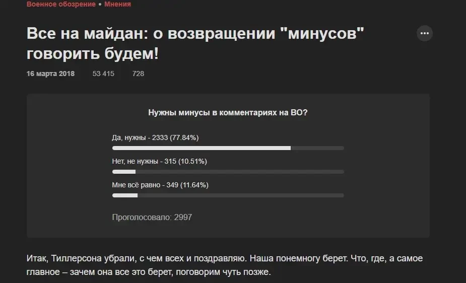 Пожалуй, ни на что больше наши администраторы и программисты не потратили столько энергии, сколько на борьбу с «минусованием». И реально на этот путь ушло около десяти лет. Но, на наш взгляд, получилось максимально минимизировать потери от тех, кому очень важны виртуальные погончики и очень много времени на то, чтобы тыкать в кнопки, портя настроение другим.