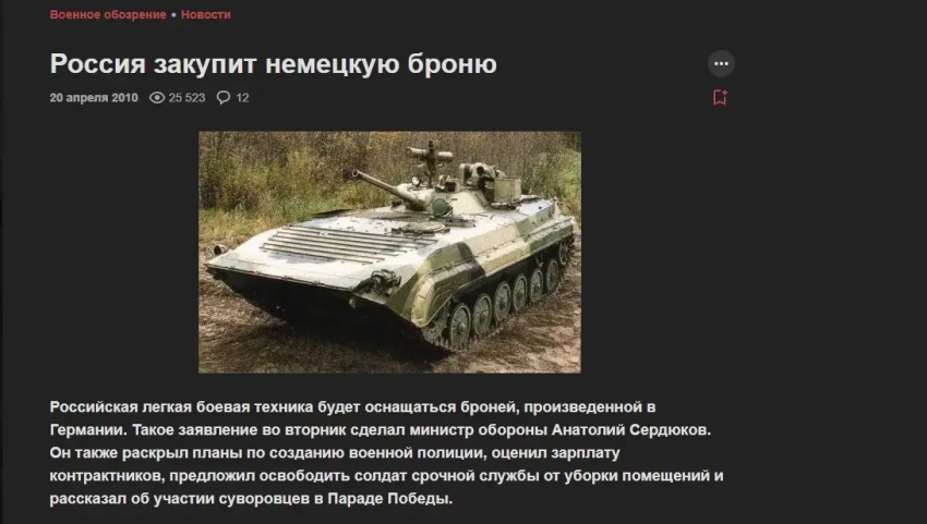 Работа была проделана очень оперативно, и уже 20 апреля 2010 года вышел первый материал. И этот день считается днем рождения «Военного обозрения».