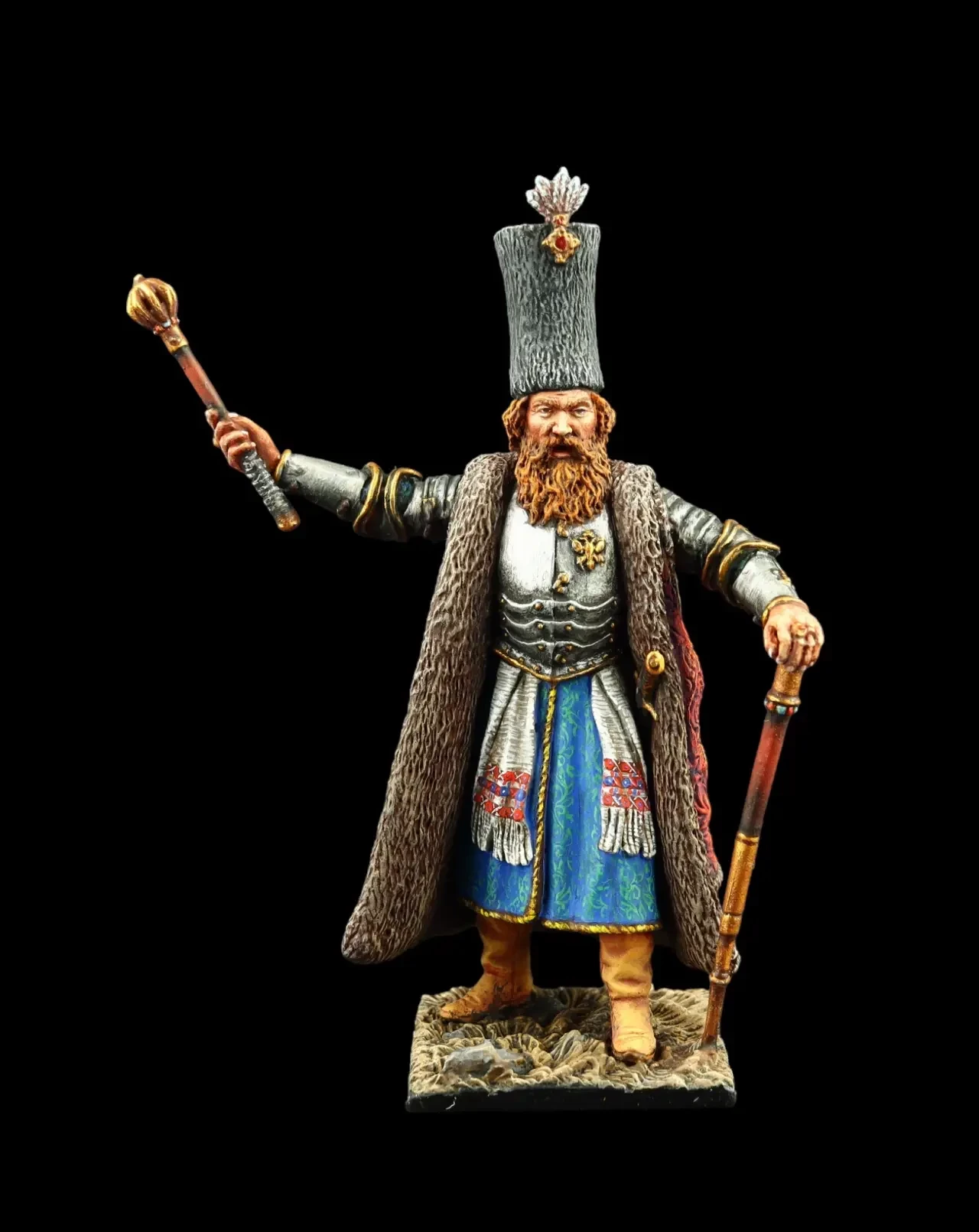 Русский воевода XVI века в богатой одежде и доспехе «зерцало», названном так за круглый рифленый диск на груди, пускавший солнечные зайчики. Производители: «Silver Dream Studio» и «Pegaso Models», Италия