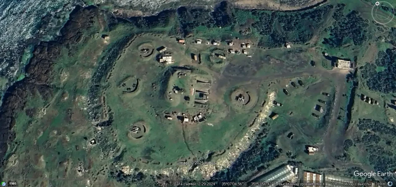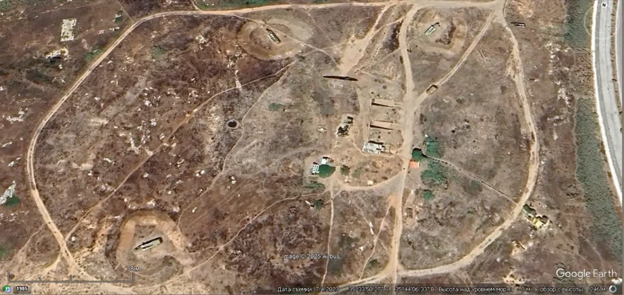 Спутниковый снимок Google Earth: позиция сирийского ЗРК С-125М1 на побережье северней порта Тартус.