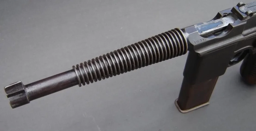 Но самое впечатляющее на этом «маузере», разумеется, ствол. Мало того, что он толстый сам по себе, то есть имеет стенки большей толщины, чем у традиционного К96, так на нем еще и оребрение поставили, так что такие стволы впору было ставить на какой-нибудь куда более «патроноемкий» пистолет-пулемет, а не на этот 20-зарядный «маузер»!
