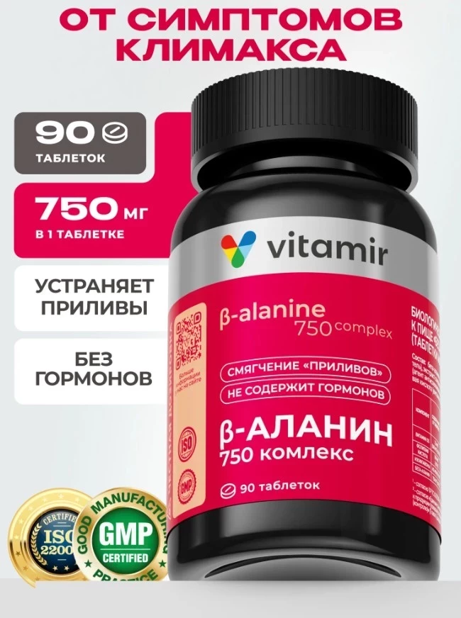 В рейтинге негормональных БАДов при климаксе у женщин этот препарат занимает особое место благодаря ключевому компоненту – бета-аланину. Эта аминокислота напрямую воздействует на терморегуляцию, значительно уменьшая частоту и интенсивность приливов (до 70% по клиническим данным). Одновременно она улучшает когнитивные функции, снижает усталость и обладает антиоксидантным эффектом, замедляя процессы старения. Преимущество препарата – быстрый результат (улучшения заметны уже через 7-10 дней) и отсутствие гормональных компонентов в составе.