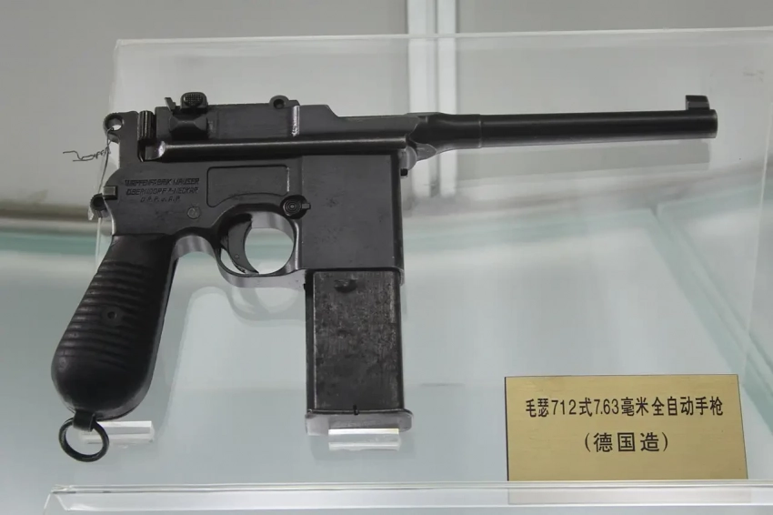 Китайская копия пистолета-пулемёта «Mauser» M712 (C96). Рама и ствол примерно стандартного размера, со съёмным магазином на 10 патронов. Маленький курок без внешнего кольца, клиновидный селекторный переключатель с маркировкой «N» и «R» для «Normalfeuer» и «Reihenfeuer» (автоматический огонь), ступенчатый профиль ствола, неглубокие фрезерованные панели в рамке, целик с градуировкой 50-1000 (метров), более поздний фиксатор ударника, предохранитель «универсального» типа, более поздний короткий экстрактор. Попытка добиться общего ржаво-синего цвета не удалась, хотя по внешнему виду этот пистолет выглядит скорее более тёмным. Деревянные накладки на рукоять с 12 канавками. Кольцо для шнурка. Логотип у китайского образца выглядит весьма забавным: «WAUSER». Длина ствола: 188 мм. Общая длина: 300 мм. Вес: 1,29 кг. Калибр: 7,63-мм. Музей Китайской народно-освободительной армии. Пекин