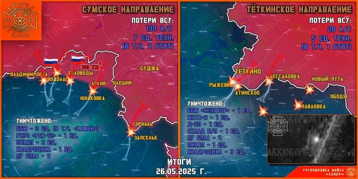 ВС РФ уничтожили группу ВСУ на границе под Тёткино в Курской области: свежие данные на 27.05.2025
