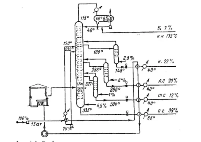 Схема нефтяной ректификационной колонны из учебника И. Л. Гуревича