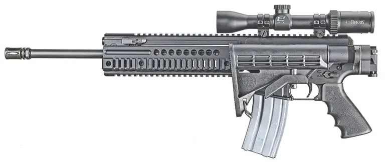 В частности, такие винтовки в США производит компания Rock River Arms. Причем винтовки не привлекали особого внимания... пока одна из ее моделей не была принята на вооружение Управлением по борьбе с наркотиками США. Все модели AR-15 компании Rock River изначально имели маркировку LAR. А вот если к ней добавлена аббревиатура PDS, то это как раз и означает, что на ней установлена поршневая система. Сегодня в США предлагаются ее две версии: одна с ребристым литым цевьем, а другая — с алюминиевым трехрельсовым цевьем. Что до системы поршневого привода, то это запатентованная разработка, которая позволяет складывать приклад вбок. Цена этой винтовки выше, чем можно было бы ожидать, — 1750 долларов. Версия с полимерным цевьем стоит 1595 долларов.