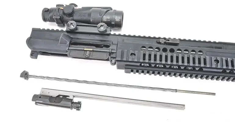 Но самое важное то, что ствол и буфер отдачи лежат на одной линии, а буфер отдачи находится в прикладе. Благодаря этому заметно комфортнее воспринимается отдача как при стрельбе патронами промежуточного калибра, так и винтовочного калибра. И в том, и в другом случае это повышает меткость стрельбы и, опять же, помогает популярности AR-15.