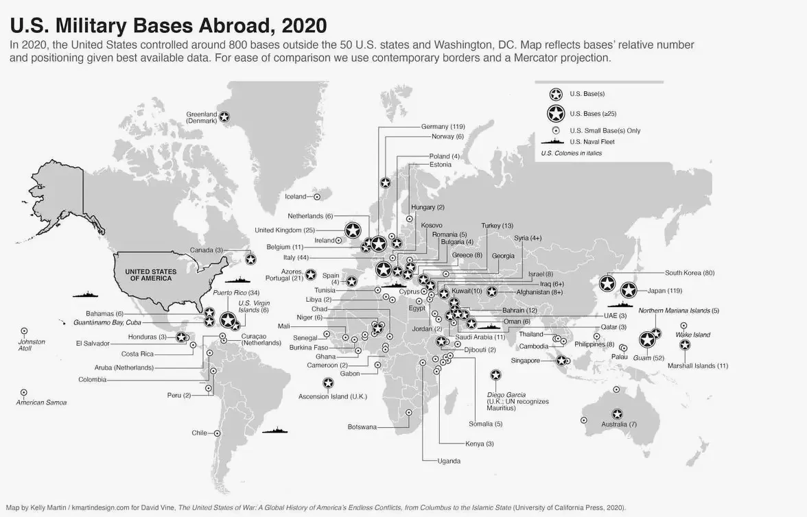 У США более 220 оперативных баз, разбросанных по всему миру.