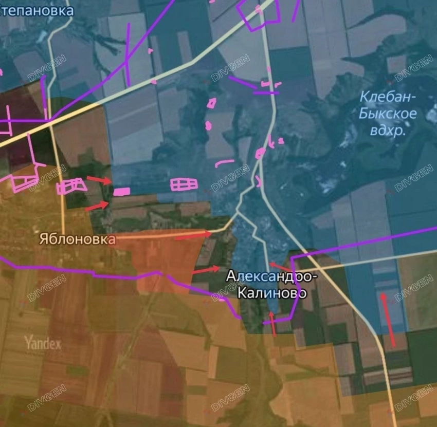 На Константиновском направлении идут встречные бои в районе Яблоновки и Александро-Калиново. Противник пытается удержать логистические пути, чтобы не допустить окружения группировки южнее Клебан-Быкского водохранилища. Наши штурмовые подразделения взяли под контроль центр Яблоновки и продвигаются к Александро-Калиново с северо-запада. Туда же идут активные наступательные действия южнее и юго-восточнее с применением техники. Идут ожесточенные бои за Катериновку, наши подразделения выбивают противника из посадок западнее села. В районе Щербиновки ситуация сложная. Шахта им. Матроны Московской снова под контролем противника. Идут бои за опорные пункты ВСУ западнее Петровского (Новоспасского).