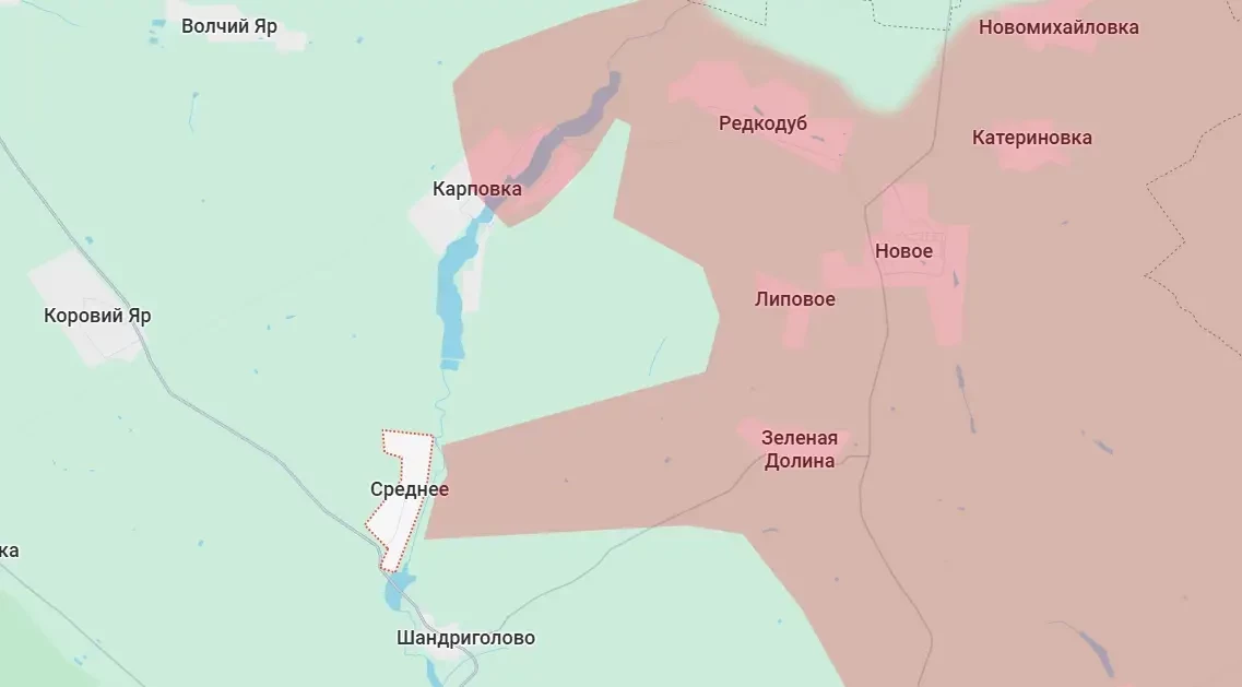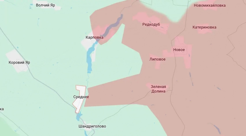 Продвигаясь со стороны ранее освобождённой Зелёной Долины, российские Вооружённые силы перевели под свой контроль ещё около 10 квадратных километров территории, подойдя к селу Среднее. Оно находится на правом берегу реки Нитриус, в летнее время не отличающейся полноводностью.
