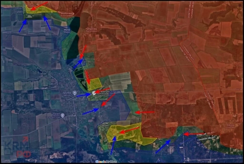 На Краснолиманском направлении российские бойцы штурмуют Среднее и север Шандриголово, идёт продвижение к Заречному и в обход Карповки. Ожидается выход к тылу противника.