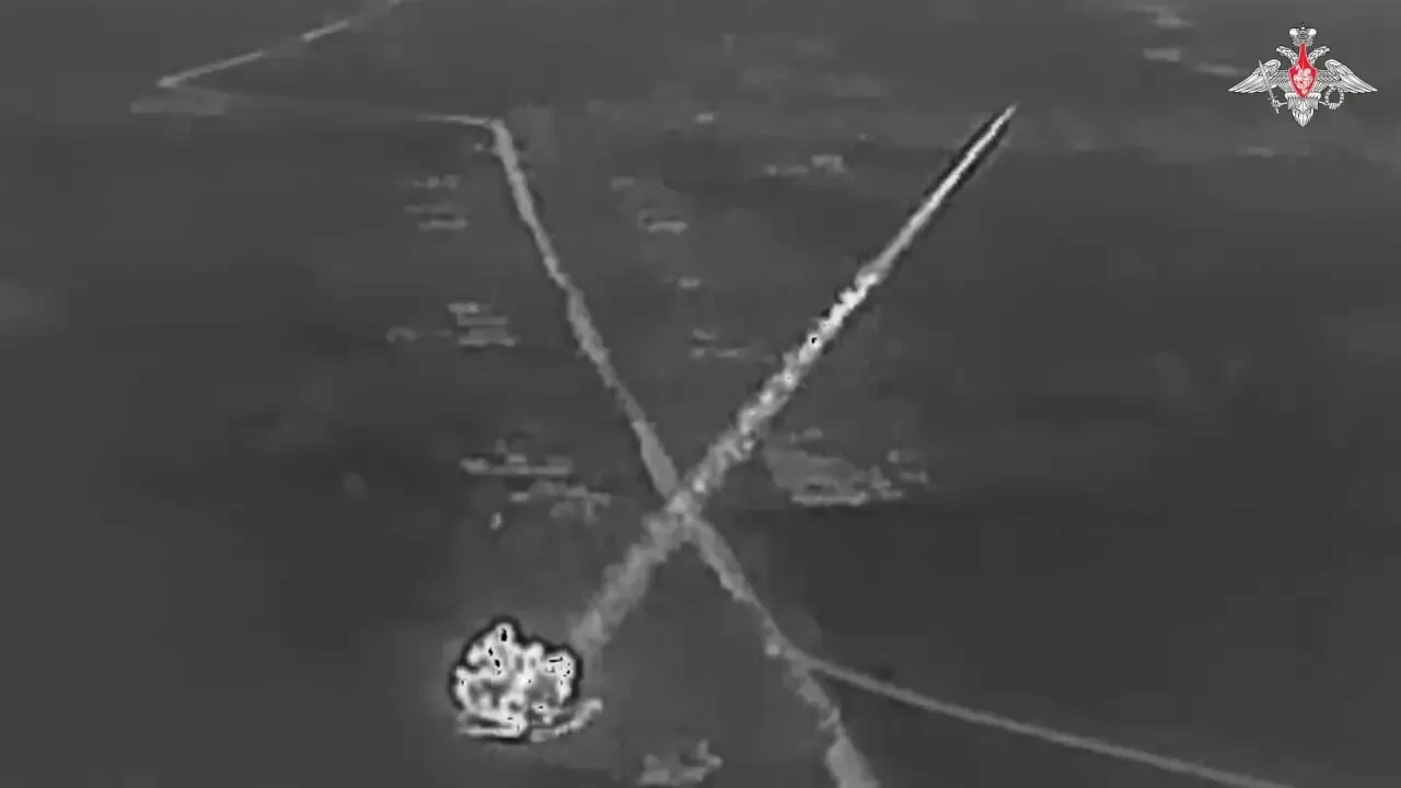 Пуск реактивного снаряда, снятый БПЛА с тепловизором