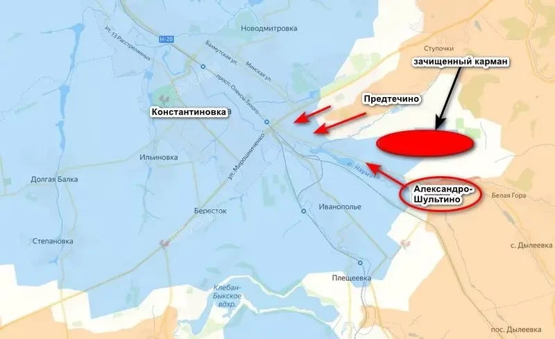 Ранее сообщалось, что войска «Южной» группировки практически полностью зачистили «карман» между Александро-Шультино и Предтечино, откуда ВС РФ уже зашли на окраины Константиновки.