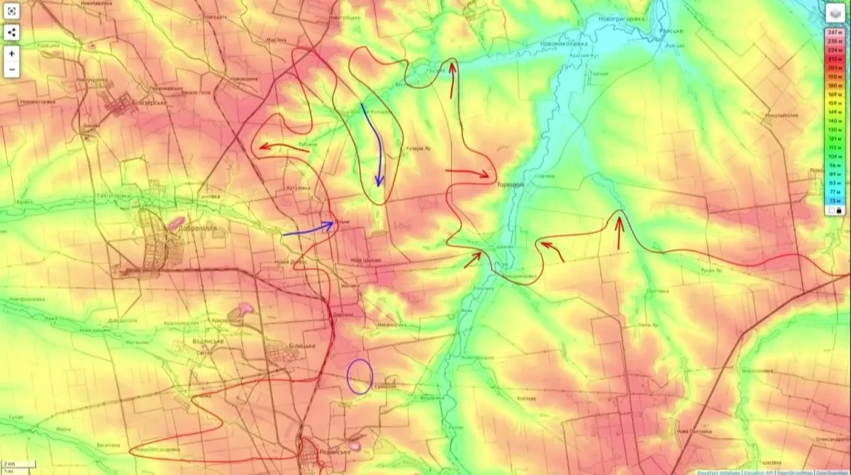 Российские войска завершили освобождение Торского и уже ведут бои в Заречном, что открывает дорогу на Ямполь и далее на Лиман. Северо-западнее полностью взят под контроль населенный пункт Среднее, а большая часть Шандриголово также находится в зоне уверенного контроля ВС РФ.