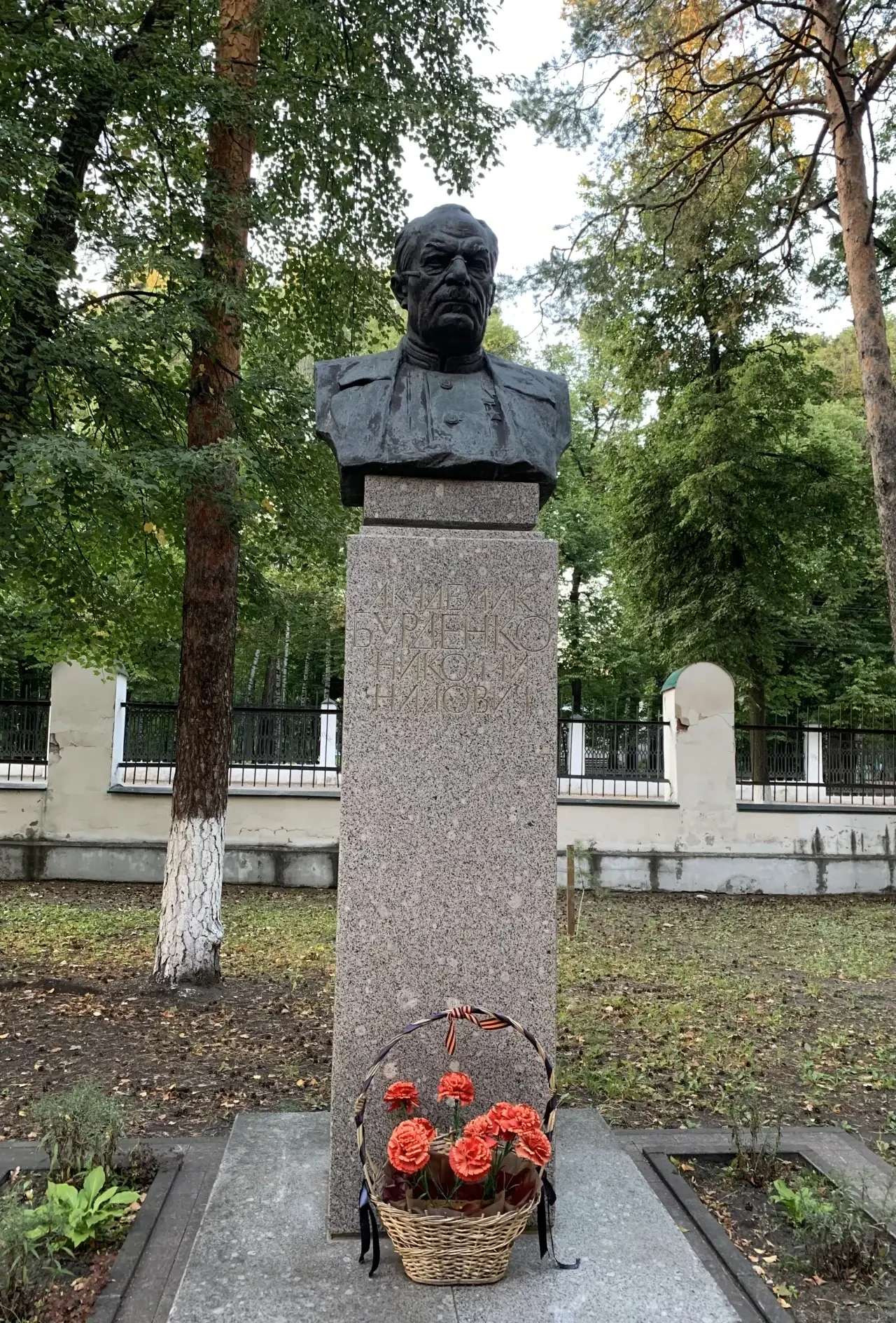 А вот это еще один памятник рядом с домом-музеем Н. Н. Бурденко. Какому-то земскому врачу, который работал в этой же клинике и был похоронен на ее территории. Но вот кто это был, я так и не узнал…