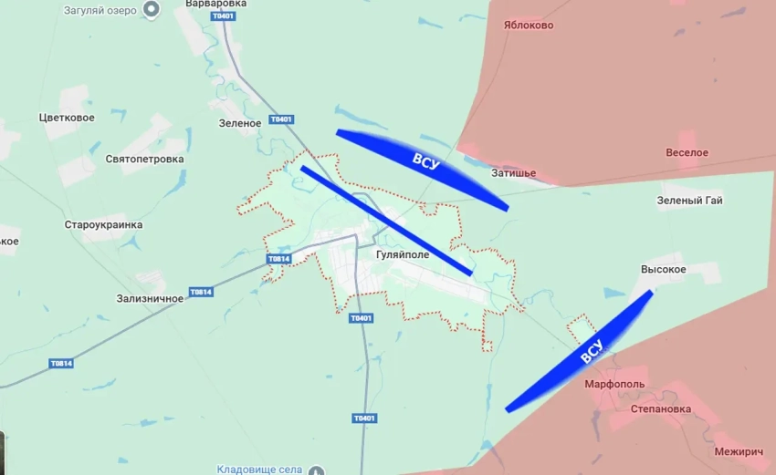 Украинское командование предпринимает попытки удержать Гуляйполе – город на востоке Запорожской области. Напомним, что конфигурация на этом направлении такова, что гуляйпольский гарнизон ВСУ оказался охвачен с трёх направлений: южного и юго-западного, восточного и северного. Причём на юго-востоке и востоке российские войска вплотную подошли к городской черте.