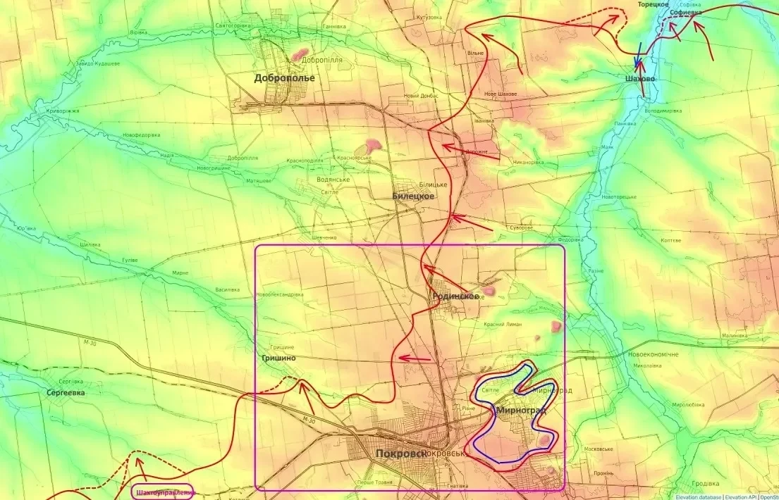 Потеря Гришино и идущая зачистка Родинского фактически ставят крест на обороне северной части Покровска и деблокаде Мирноградской группировки ВСУ. Линия снабжения дронами для противника после падения Гришино отодвинется на северо-запад, что сделает поддержку гарнизона в Мирнограде невозможной.