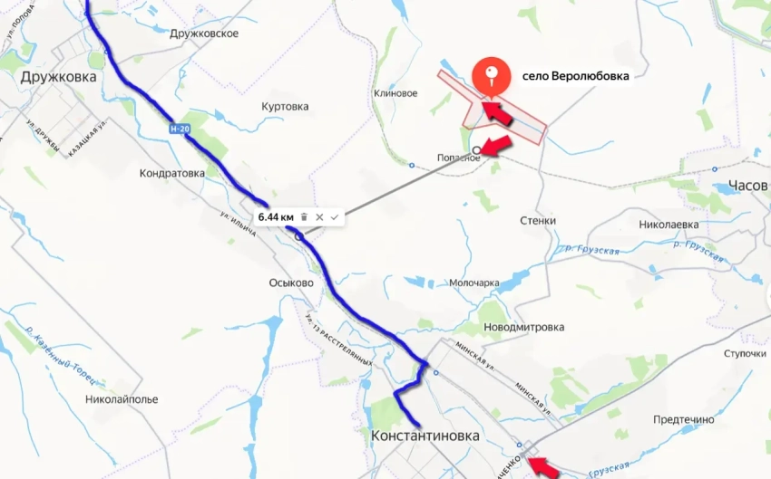 Российские войска, продолжая наступление в Донецкой Народной Республики, увеличили площадь контроля в селе Веролюбовка, в которое вошли накануне. Веролюбовка находится примерно в 5 км западнее ранее освобождённого Часова Яра и менее чем в 10 км от юго-восточных окраин Краматорска, остающегося под контролем противника.