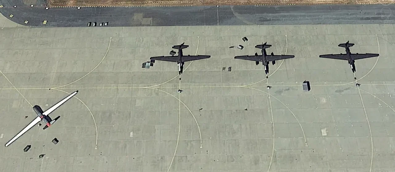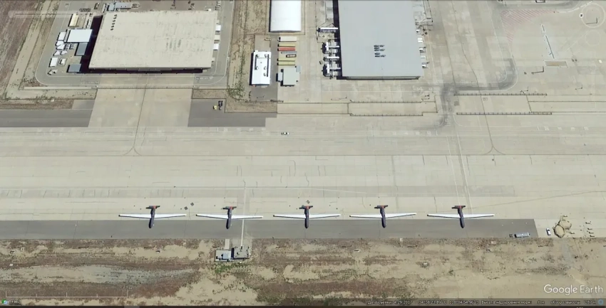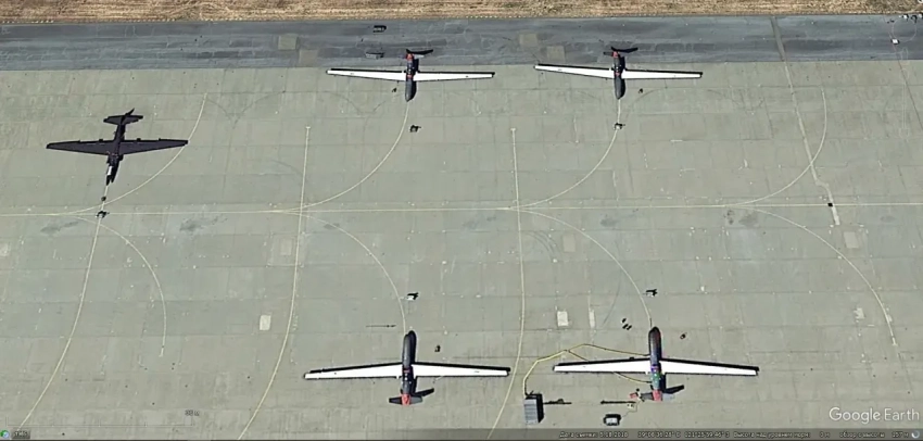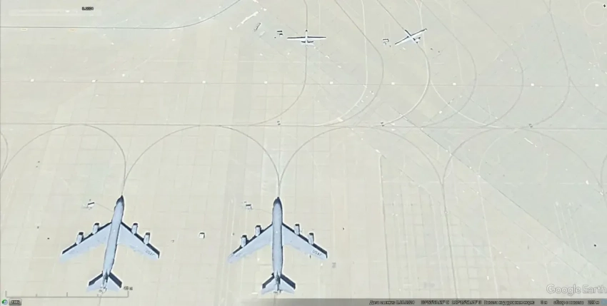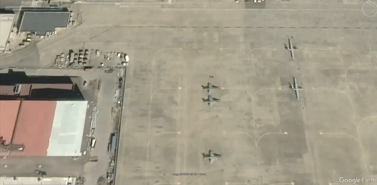 Спутниковый снимок Google Earth: самолёты Lockheed U-2S Dragon Lady на авиабазе Бил