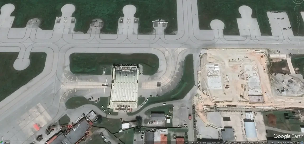 Спутниковый снимок Google Earth: БПЛА над взлётно-посадочной полосой авиабазы Крич