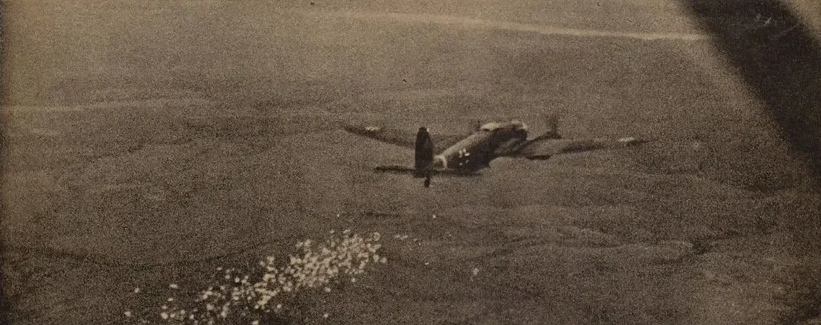 Вид на «дорожку» падающих листовок из соседнего немецкого бомбардировщика