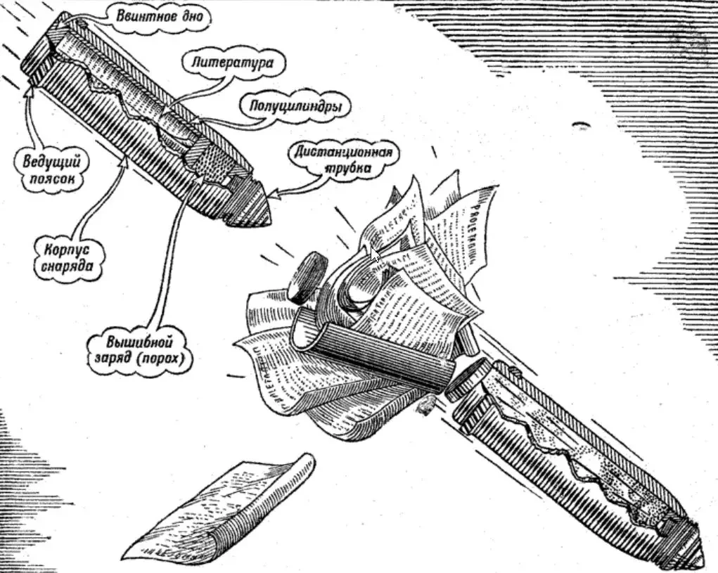 Использование артиллерии для этой цели было связано с меньшими бюрократическими проволочками. Солдаты не боялись обстрелов агитационными снарядами, так как звук летящего снаряда, начиненного листовками, отличался от звука боевого.