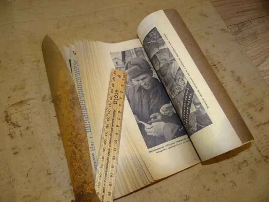 Рулон пропагандистских листовок в 105-мм агитационном снаряде