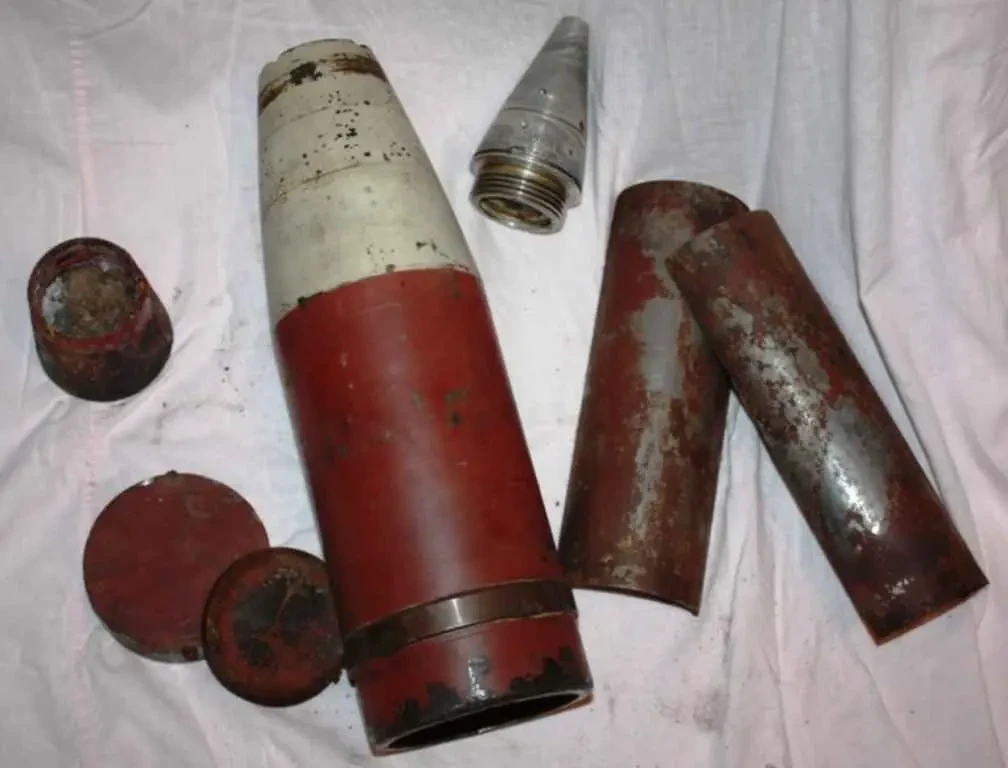 105-мм агитационный снаряд в разобранном виде