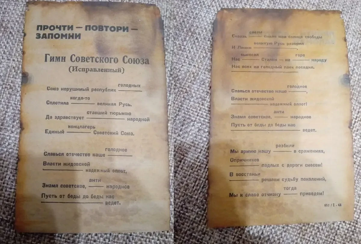 Одна из пропагандистских листовок, извлечённых из агитационной гранаты