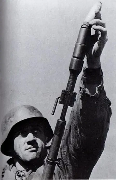 Немецкий солдат заряжает 73-мм реактивную агитационную гранату