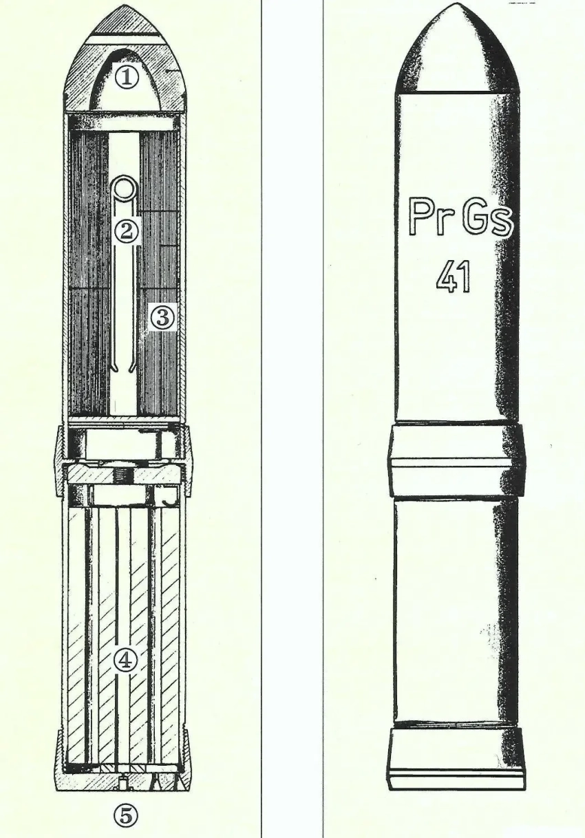 Нижняя часть боеприпаса была сделана в виде турбины. Стреляли этим снарядом из предназначенной для него пусковой установки Propagandawerfer 41.