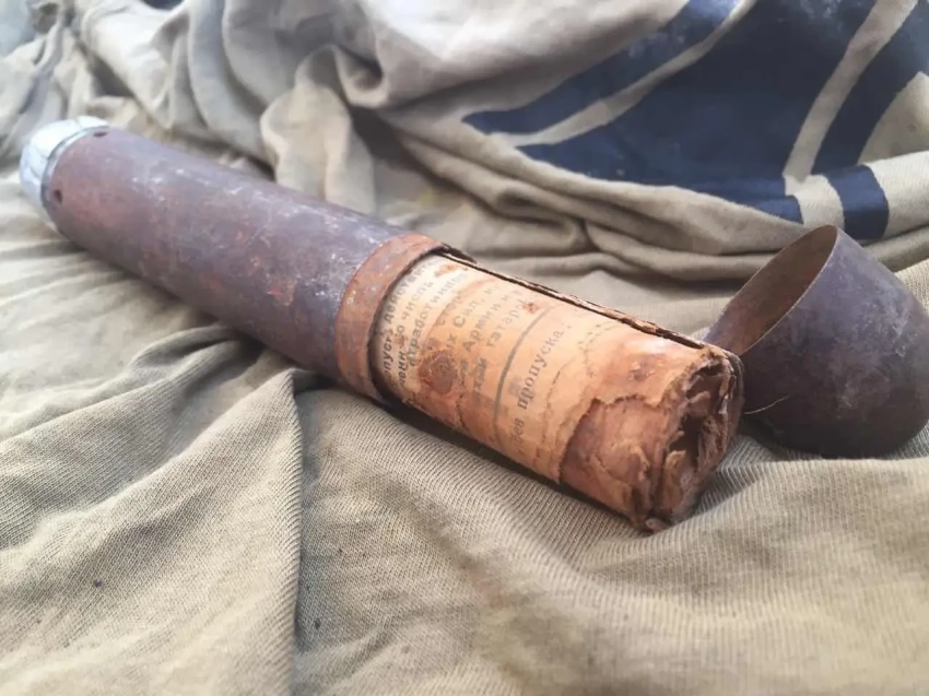 Найденная при раскопе 73-мм агитационная граната