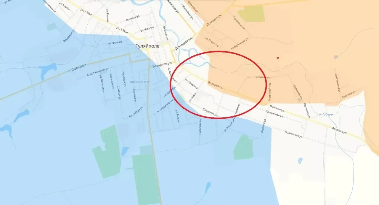 Район реки Гайчур. Севернее Гуляйполя складывается критическая ситуация для ВСУ. Российские силы полностью зачистили Герасимовку, вошли с юга в Братское и ведут зачистку северных окраин Андреевки.