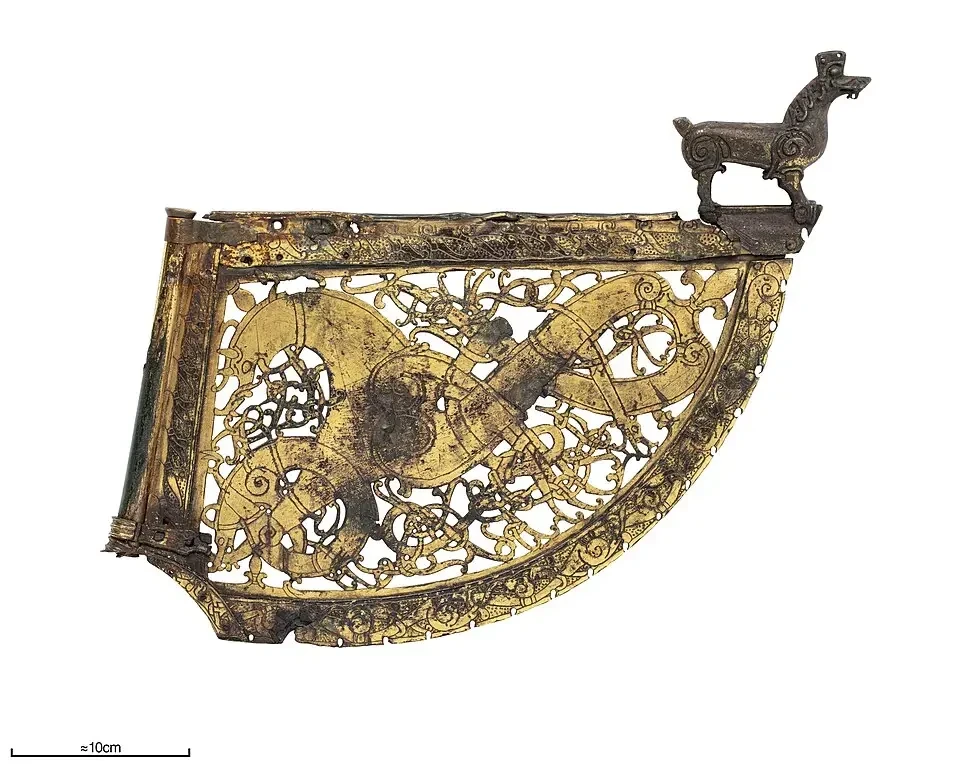 В нем археологи обнаружили останки двух женщин с высоким социальным положением (25–30 и 50–55 лет), фрагменты восточных шелковых тканей, неплохо сохранившуюся деревянную повозку, покрытую изящной резьбой в типично северном стиле, и даже… кости павлина. Все это говорит об оживленной торговле викингов с Востоком по Волге и Днепру. Кстати, ДНК-анализ показал, что обе эти женщины не были европейками. Скорей всего, они были родом из Ирана.