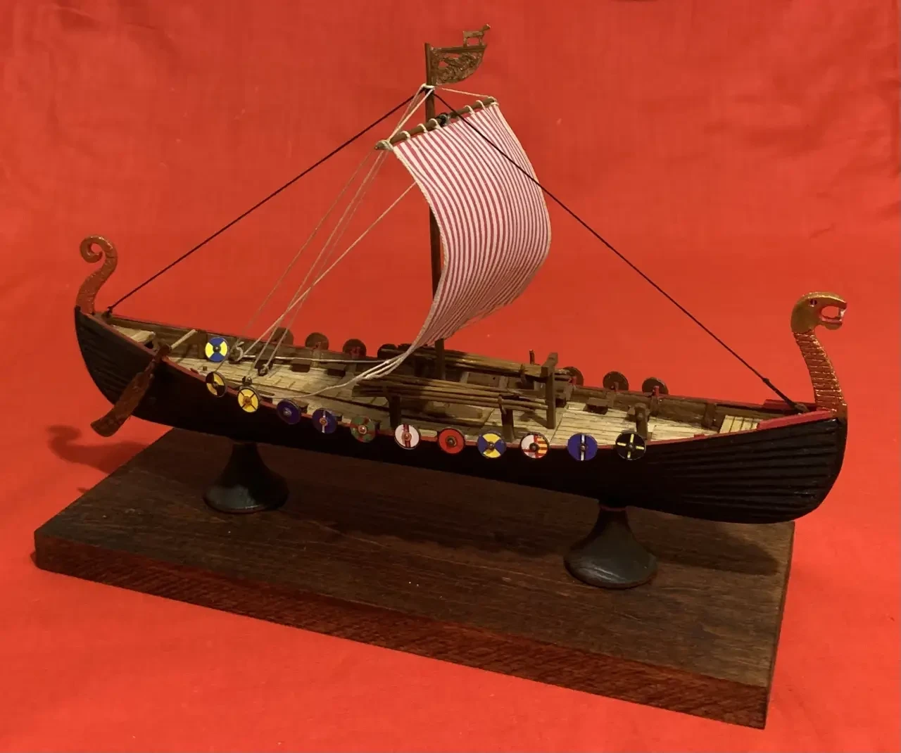 Полностью окрашенная голова дракона. Кстати, корпус драккара следует покрасить матовой акриловой краской черного цвета, поскольку викинги корпуса своих кораблей смолили, и они у них были черного цвета. Фотография автора