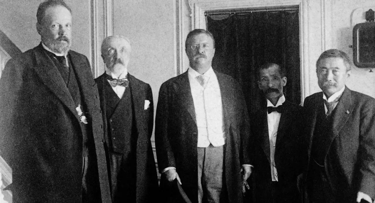 Премии мира американским президентам раздают весьма щедро. Не станем в очередной раз повторять комедию с награждением Барака Обамы, а обратимся к гораздо менее известному прецеденту – премии для Теодора Рузвельта образца 1906 года. Символично, что получил он её за посредничество при подписании мирного договора между воюющими Россией и Японией. Рузвельт, кстати, также республиканец. Сначала американец явно болел за Японию, но довольно быстро в Вашингтоне просекли: если Токио слишком разойдётся, баланс сил в Азии полетит к чертям.