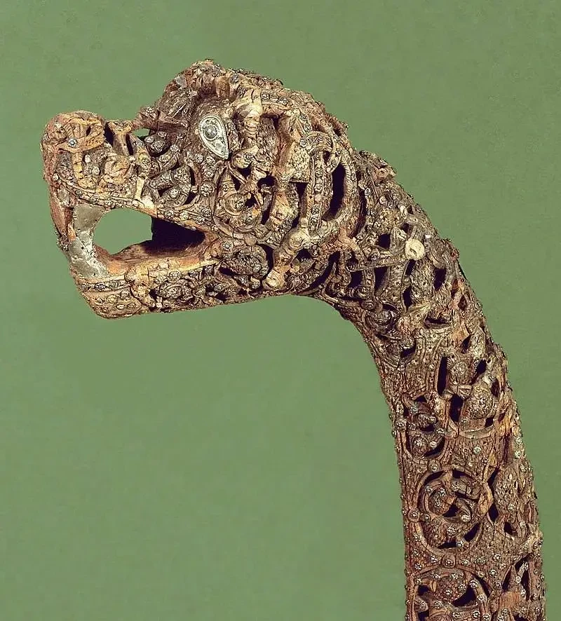 «Голова дракона». Найдена на борту «Корабля из Осеберга». Музей истории культуры университета в Осло