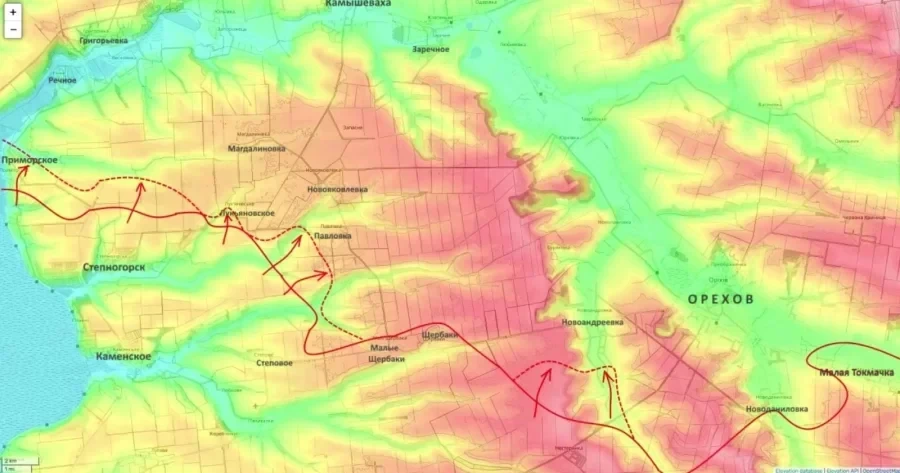На юге ключевые события разворачиваются вокруг Орехова. После взятия Степногорска группировка «Днепр» продвигается на север - в сторону Лукьяновского, Новояковлевки, Павловки и Магдалиновки. За последние двое суток, по данным Подоляки, Лукьяновское практически полностью зачищено, бои продолжаются в районе Павловки.