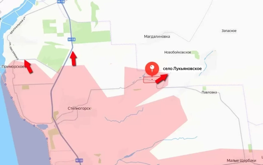 Михаил Теплинский отметил, что войска находятся на финальной стадии освобождения ещё одного населённого пункта на этом направлении. Речь идёт о достаточно крупном селе Приморское, которое тянется на несколько километров вдоль восточного берега Каховского водохранилища.