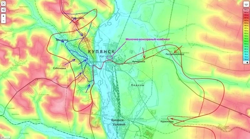 Таким образом, продолжается расширение северного фланга в районе пгт Боровая. Этот населённый пункт, наряду с Купянском-Узловым, являются основными узлами обороны ВСУ на Оскольском левобережье.