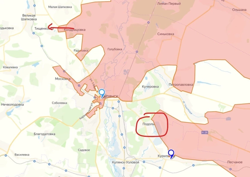 Интересно, что даже на российских онлайн-картах зоны проведения СВО сейчас Подолы отмечены в серой зоне, без контроля ВС РФ населенного пункта.
