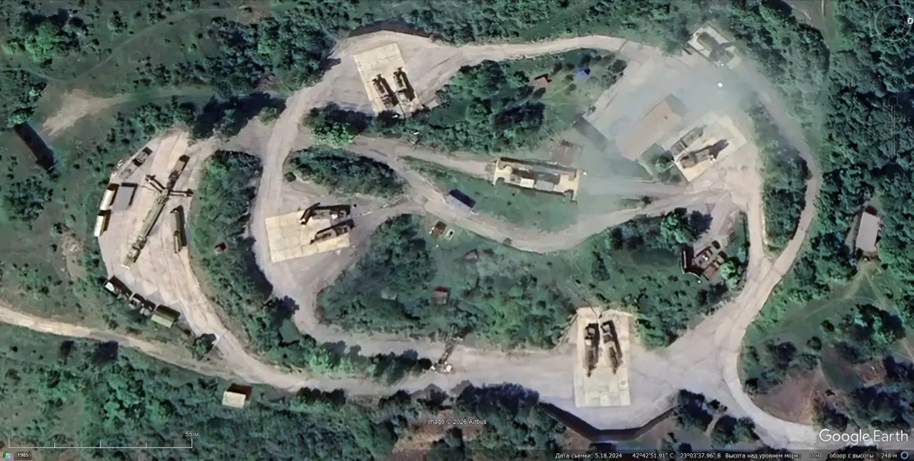 Спутниковый снимок Googlе Еarth: позиция ЗРС С-300ПМУ в 12 км западней Софии. Снимок сделан в августе 2025 года