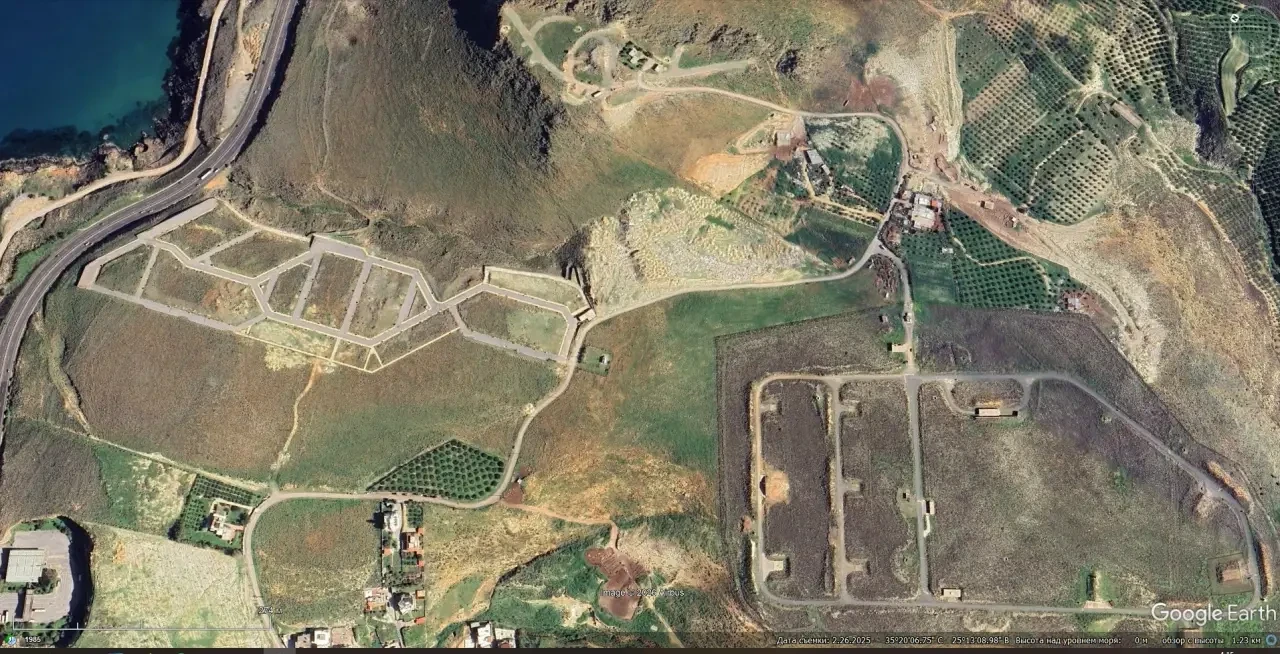 Спутниковый снимок Googlе Еarth: пустая огневая позиция ЗРС С-300ПМУ-1 в 3 км восточней аэродрома Казантзакис. Снимок сделан в феврале 2025 года