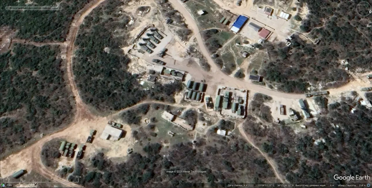 Спутниковый снимок Googlе Еarth: позиция ЗРС С-300ПМ2 в 20 км к северо-западу от города Масьяф. Снимок сделан в апреле 2022 года