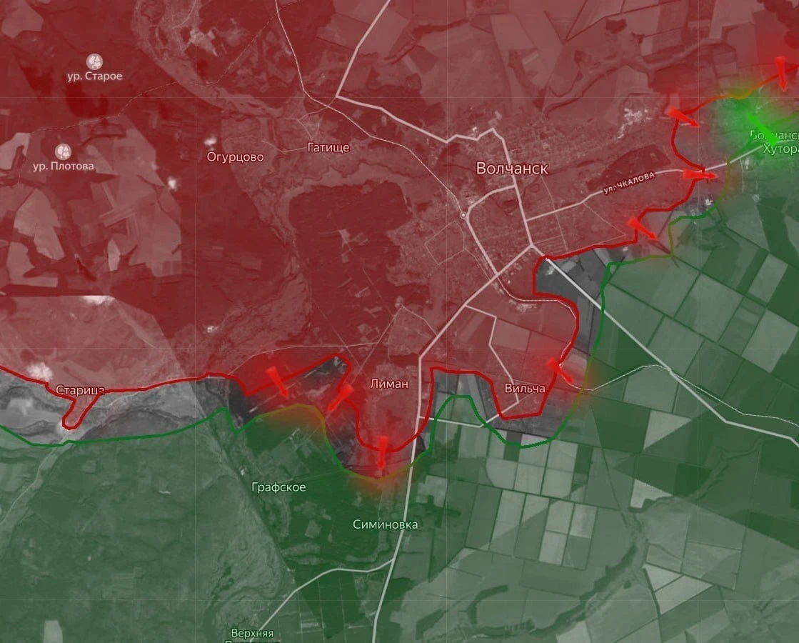 На Харьковском направлении ВС РФ расширяют зону контроля в лесах у Старицы. В районе Лимана и Прилипки наши войска вышли к окраинам Графского и пробиваются к Симиновке. Есть также продвижение по полям южнее Вильчи. В Волчанских Хуторах противник оказывает ожесточённое сопротивление, но тактические успехи есть и там, уточняет Олег Царёв в своём Telegram-канале.
