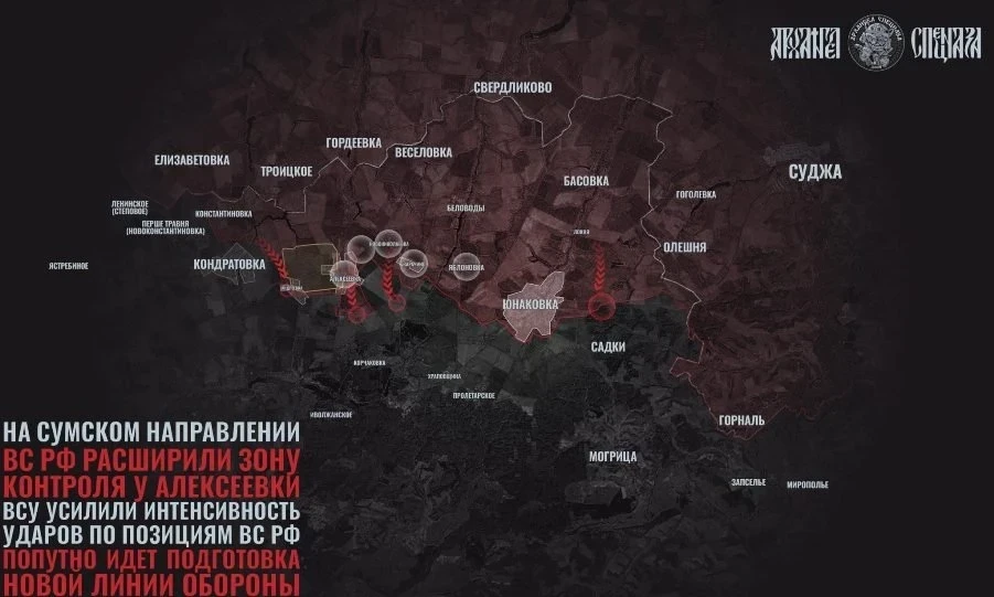 В Сумском приграничье высокий темп боёв удерживается в районе Андреевки и Алексеевки. Обе стороны сильно нарастили использование дронов. Работают артиллерия, миномёты, но на земле движения практически нет.
